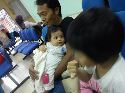 Seperti biasa, time-time ada baby ni, lawatan ke klinik wkesihatan memang biasa. Ziarah bulanan kami kalini berjalan macam biasa jer. Ingatkan Zharffan nak kena cocok bontot. Check-check jer rupanya.